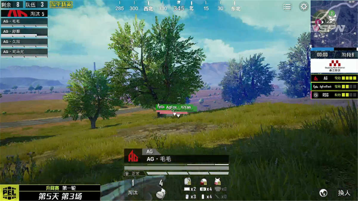 第七阶段中期,RSG将仅剩一人的AHQ淘汰,第八阶段TES被淘汰在信号接收区外,RSG将仅剩一人的LGD淘汰。第八阶段中期,AG占据人数优势强冲AgFoxBlack成功将AgFoxBlack淘汰。第九阶段,AG占据人数优势与仅剩两人的RSG激战,AG成功将RSG淘汰拿下本场比赛的胜利。