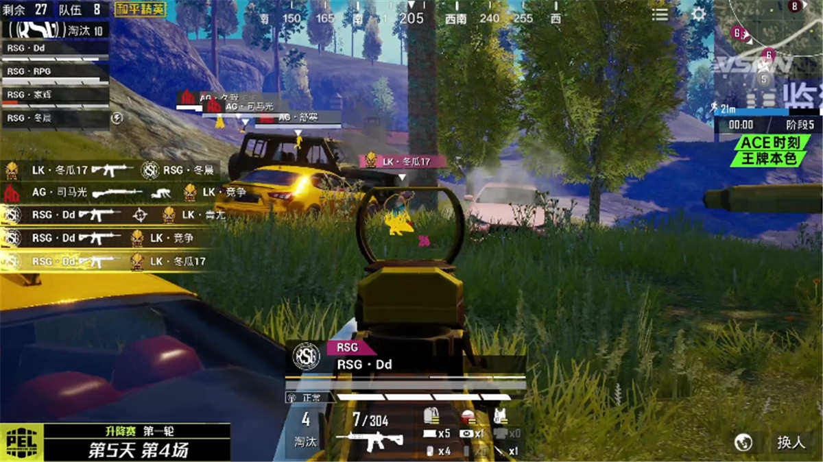 RSG战队在PEL的战场中一直表现平平,经过长时间的磨合调整,RSG战队似乎找到了更加适合自己的战术,虽然在今天的比赛中没有吃到蛋糕,但在五场比赛中都有比较稳定的发挥,在第四场比赛中更是凭借着极致的运营连续将LK、AG两支队伍淘汰,五场比赛的稳定发挥,让RSG战队一举夺得了今天单日积分榜的榜首。